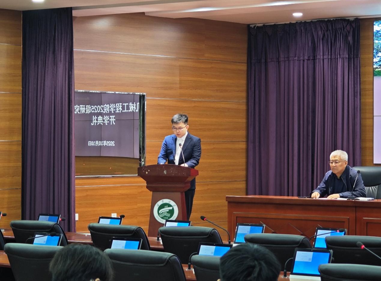 2025年10月10日,机械工程学院在致远楼四楼报告厅举行了2025级研究生开学典礼。在学院领导与全体新生的热烈掌声中,本次典礼正式拉开帷幕。会议主持人、机械工程学院副院长王昱潭教授逐一介绍了在场嘉宾。