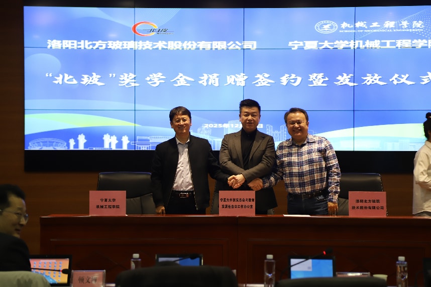 12月10日,洛阳北方玻璃技术股份有限公司(以下简称“北玻股份”)与宁夏大学机械工程学院在贺兰山校区致远楼联合举办校企合作系列活动。本次活动通过座谈签约、奖学金颁发、企业宣讲及毕业生面试等环节,构建“育人-就业”一体化协同平台,全面助力机械工程学院高素质人才培养。